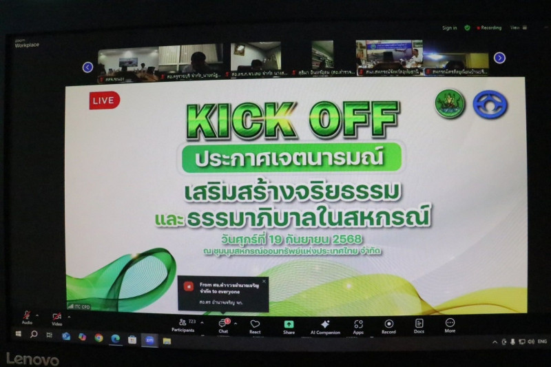 วันที่ 19 กันยายน 2568 นายชนะ อมรวัฒน์ สหกรณ์จังหวัดสงขลา พร้อมด้วย กลุ่มงานวิชาการ กลุ่มส่งเสริมสหกรณ์ 1–5 และฝ่ายบริหารทั่วไป เข้าร่วมเข้าร่วมกิจกรรมประกาศเจตนารมณ์จริยธรรมและธรรมาภิบาลในการดำเนินงานของสหกรณ์ (Kick off) เพื่อสร้างความเข้าใจของสหกรณ์นอกภาคการเกษตรร่วมกันในเป้าหมายให้สหกรณ์ดำเนินธุรกิจอย่างมีธรรมาภิบาลและพัฒนาสหกรณ์นอกภาคการเกษตรให้มีการบริหารจัดการที่ดี