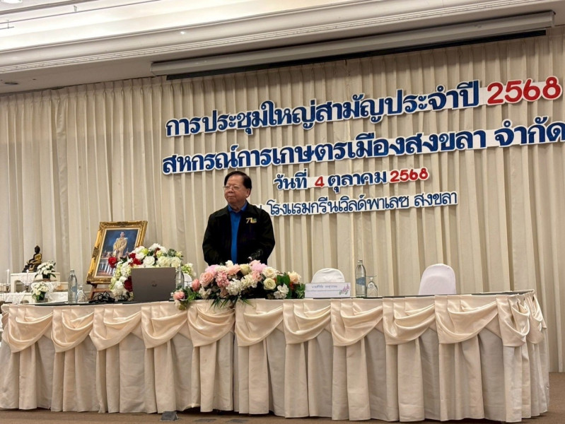 วันที่ 4 ตุลาคม 2568 นายชนะ อมรวัฒน์ สหกรณ์จังหวัดสงขลา มอบหมายให้ นางสุดารัตน์ กุสสัยนักวิชาการสหกรณ์ชำนาญการ ผู้อำนวยการกลุ่มส่งเสริมสหกรณ์ 1 (อำเภอเมือง อำเภอสิงหนคร อำเภอนาหม่อม ) พร้อมด้วย นางพิมลสุข สุนทรเสนาะ นักวิชาการสหกรณ์ชำนาญการ และ นางณัฐิพร เรืองมาก นักวิชาการสหกรณ์ชำนาญการ เข้าร่วมประชุมใหญ่สามัญประจำปี 2568 สำหรับปีบัญชีสิ้นสุด 30 มิถุนายน 2568