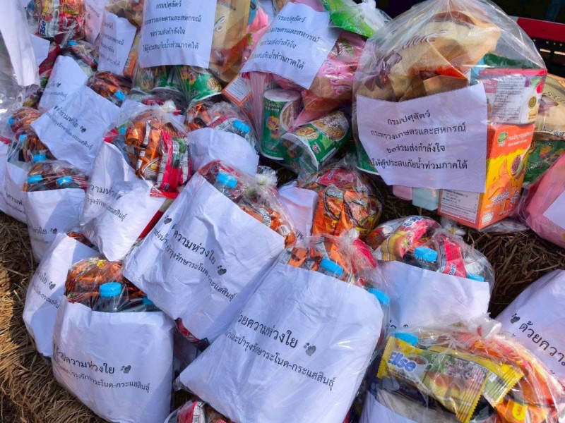 วันที่ 29 พฤศจิกายน 2568 เวลา 09.00 น. นายวิทยา แก้วมี ผู้ตรวจราชการกระทรวงเกษตรและสหกรณ์ เป็นประธานมอบหญ้าอาหารสัตว์พระราชทาน (ฟางอัดก้อน) จำนวน 250 ฟ่อน (5,000 กก.) ซึ่งได้รับพระราชทาน จาก พระบาทสมเด็จพระเจ้าอยู่หัว ให้แก่เกษตรกรผู้ประสบภัยน้ำท่วม ด้านปศุสัตว์ เพื่อใช้เป็นอาหารสัตว์ และมอบถุงยังชีพให้แก่ผู้ประสบภัยน้ำท่วมในพื้นที่ จำนวน 250 ชุด อาหารสุนัข-แมว 200 ชุด และน้ำดื่ม จำนวน 240 ขวด โดยมี ปศุสัตว์จังหวัดสงขลา นายชนะ อมรวัฒน์ สหกรณ์จังหวัดสงขลา นายชัยนันท์ บัวดำ นักวิชาการสหกรณ์ชำนาญการ โครงการส่งน้ำและบำรุงรักษาระโนด - กระแสสินธุ์ นางสาวสุนันทา มณี นักวิเคราะห์นโยบายและแผนชำนาญการพิเศษ และเจ้าหน้าที่ที่เกี่ยวข้อง ร่วมมอบหญ้าอาหารสัตว์และถุงยังชีพฯ ดังกล่าว ณ ศูนย์พัฒนาเด็กเล็ก หมู่ที่ 2 ตำบลบ้านขาว อำเภอระโนด จังหวัดสงขลา
