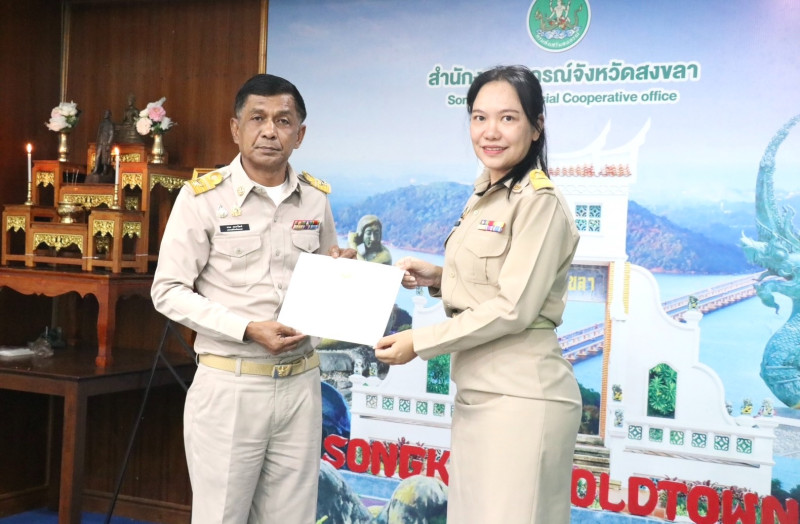 นอกจากนี้ นายชนะ อมรวัฒน์ สหกรณ์จังหวัดสงขลา มอบประกาศนียบัตรผู้ผ่านการอบรมโครงการฝึกอบรมเชิงปฏิบัติการหลักสูตร “การเพิ่มทักษะการเขียนหนังสือราชการ การเขียนรายงาน และสรุปรายงานการประชุมอย่างมีประสิทธิภาพ” ให้แก่ นางสาวลักขณันต์ เจริญชีพ นักวิชาการสหกรณ์ชำนาญการ